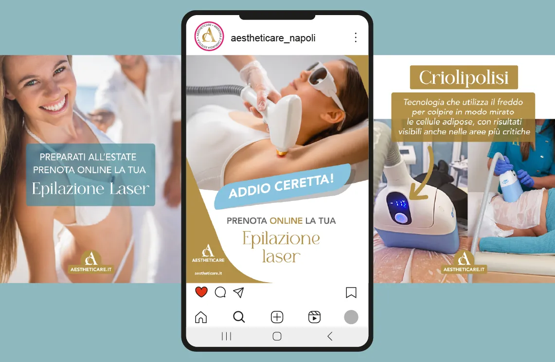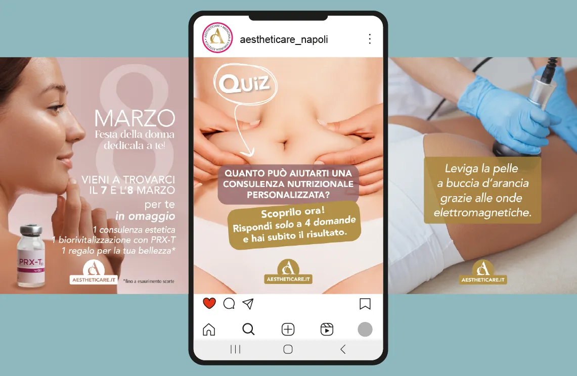 Un’identità nata da zero e sviluppata in modo coerente su tutti i canali. Aestethicare si presenta oggi come un brand solido, elegante e professionale, con una comunicazione che trasmette fiducia, competenza e cura.