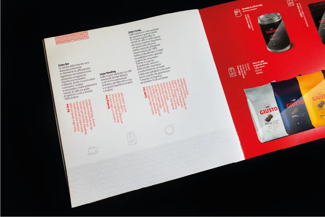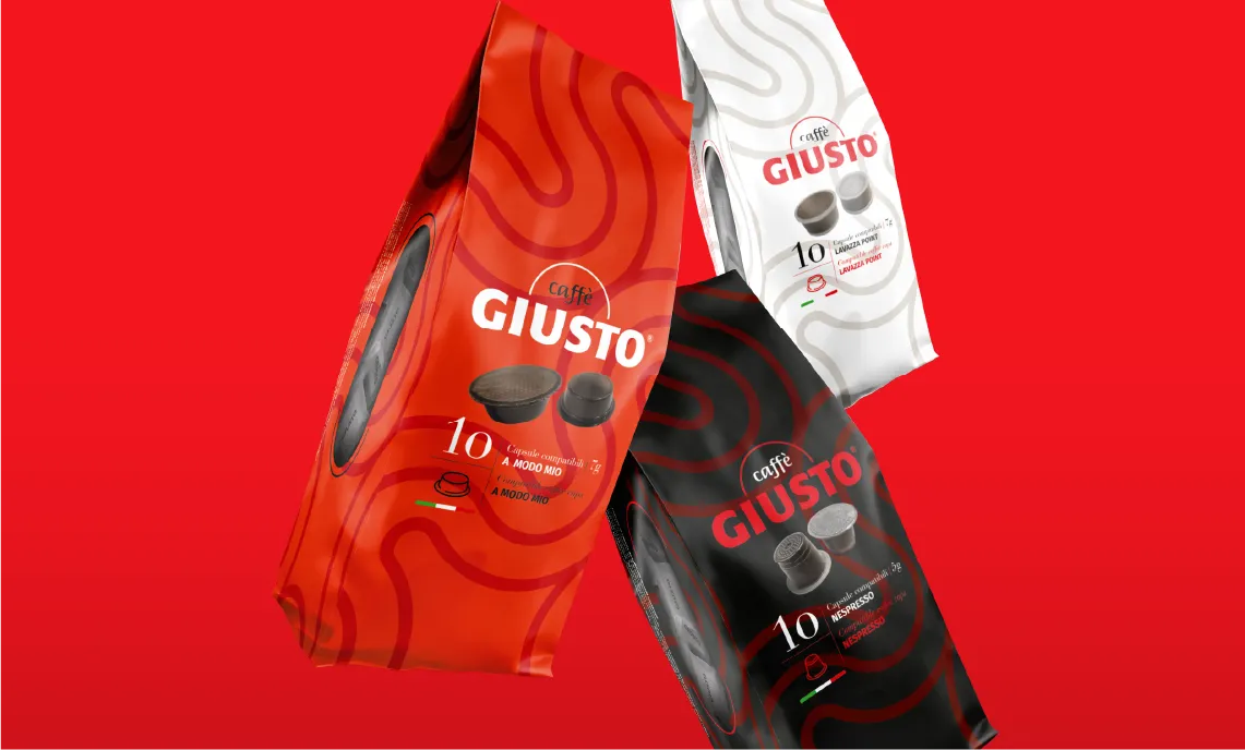Una brand identity forte, moderna e memorabile, capace di distinguere Caffè Giusto nel panorama competitivo e di accompagnarne l’espansione in nuovi mercati. Un progetto completo, dove ogni supporto racconta la stessa storia di autenticità e gusto.