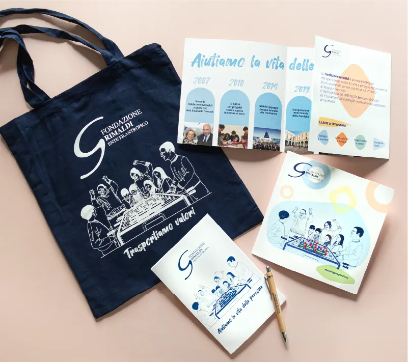 La Fondazione Grimaldi oggi comunica con un’immagine forte, coerente e distintiva, in grado di raccontare il proprio impatto sociale con efficacia e sensibilità. Un’identità progettata per avvicinare, un messaggio visivo pensato per costruire fiducia.