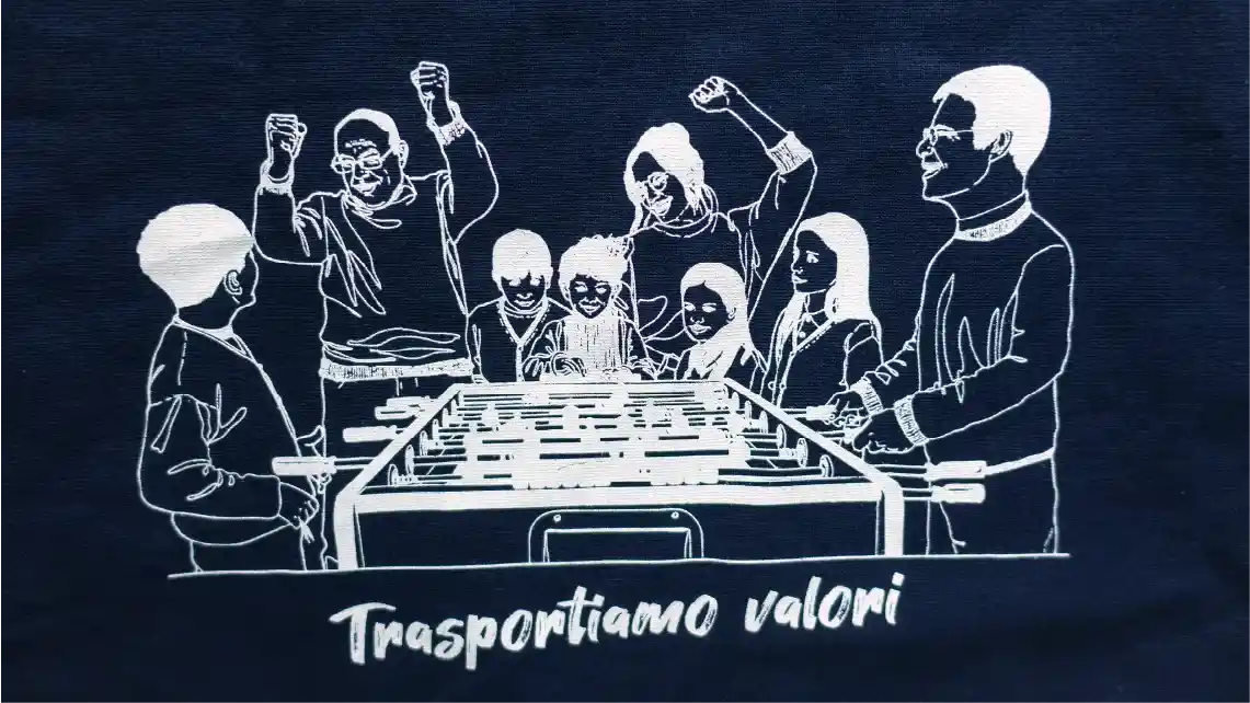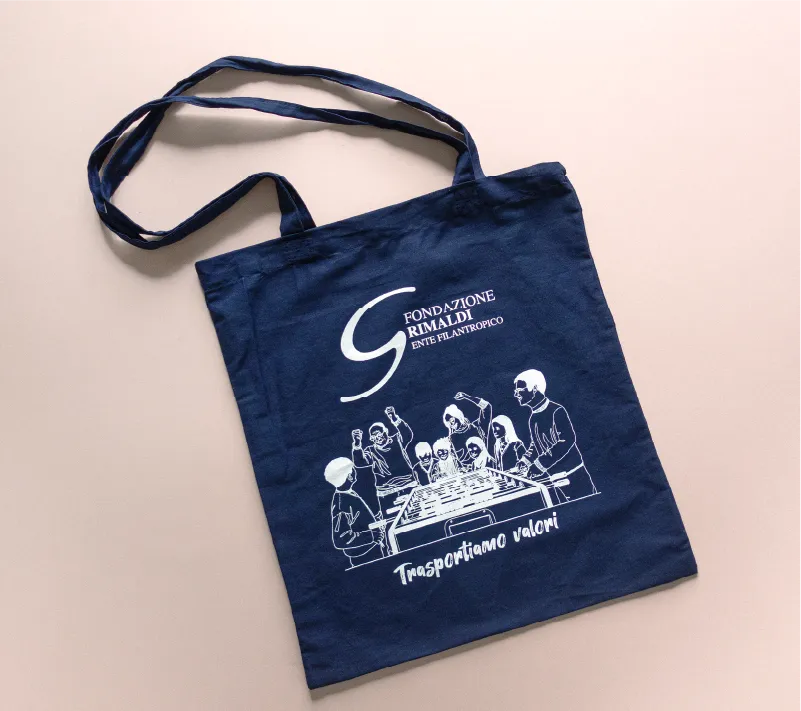Tote bag istituzionali personalizzate con illustrazioni dedicate: “Trasportiamo valori” è diventato claim e visual al tempo stesso, un messaggio che rappresenta l’impegno costante della Fondazione.