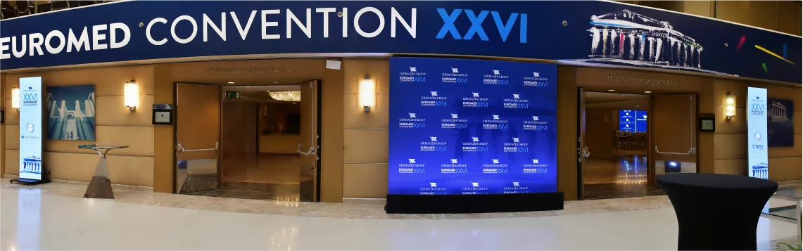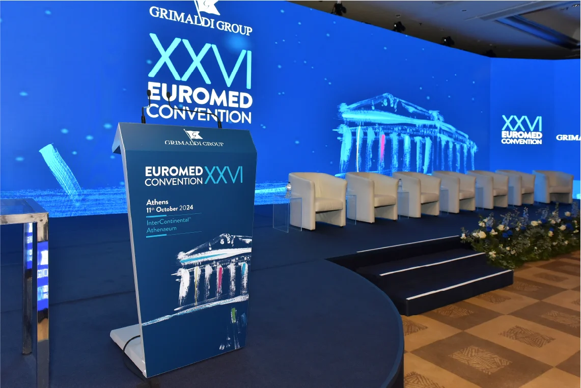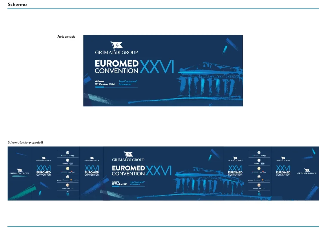 In occasione della Euromed Convention XXVI ad Atene, uno degli appuntamenti più rilevanti per il settore del trasporto marittimo, Grimaldi Group ha affidato ad AT ADV lo sviluppo grafico completo per lo stand espositivo istituzionale. Un ambiente elegante, coerente con l’identità del brand e capace di valorizzare l’importanza dell’evento.